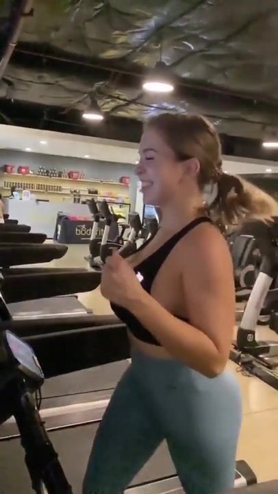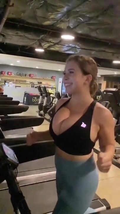 nice tits running in gym